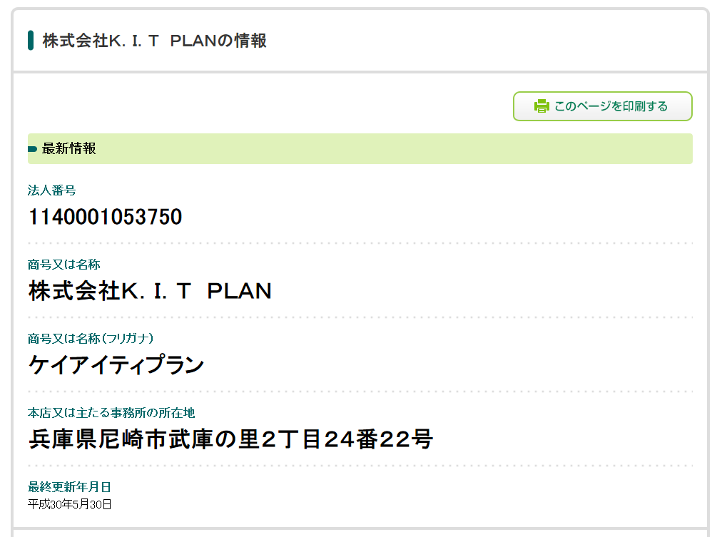 情報 株式会社K.I.T PLANの情報|国税庁法人番号公表サイト