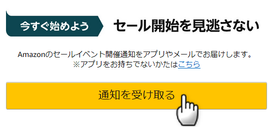 そんな場合は、ブラックフライデーページから「セールの通知設定」を行っておきましょう。