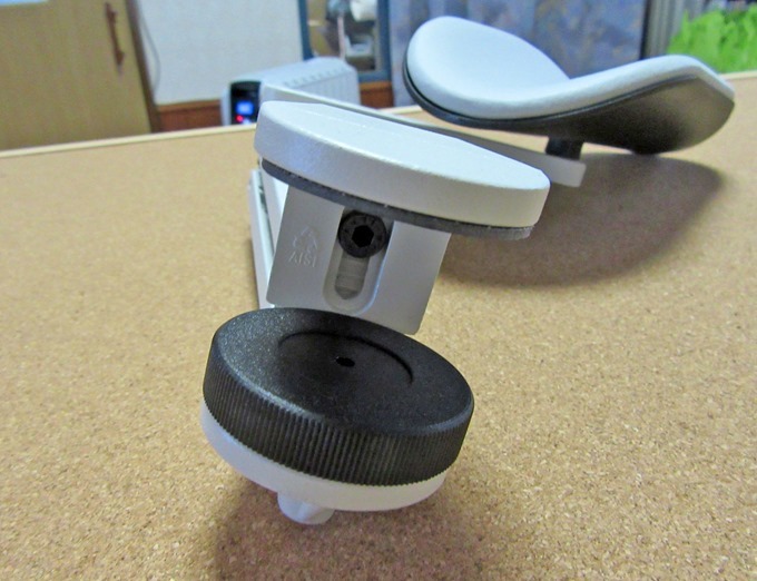 僕は、これまでいくつかの「肘置き」は試してきました。例えば、同タイプのAREAアームスタンドの場合は、以下のように2ヶ所、それぞれの関節ごとに「調節ネジ」を締める必要があります。