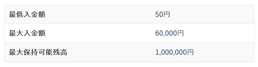 カラフルボックスでは、最大100万円までチャージすることが可能です(1回あたり6万円まで)。